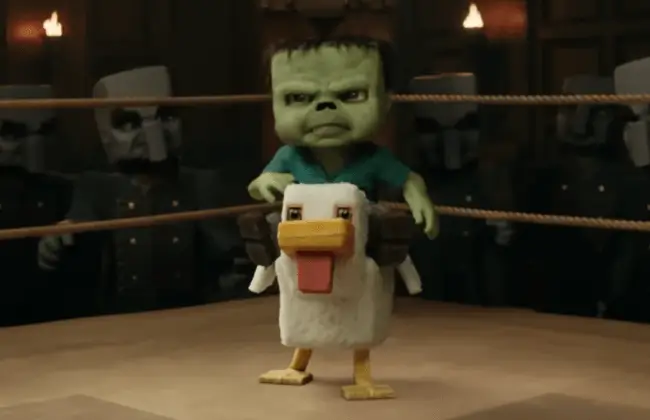 VFX «Minecraft Movie»: сцена с курицей-жокеем
